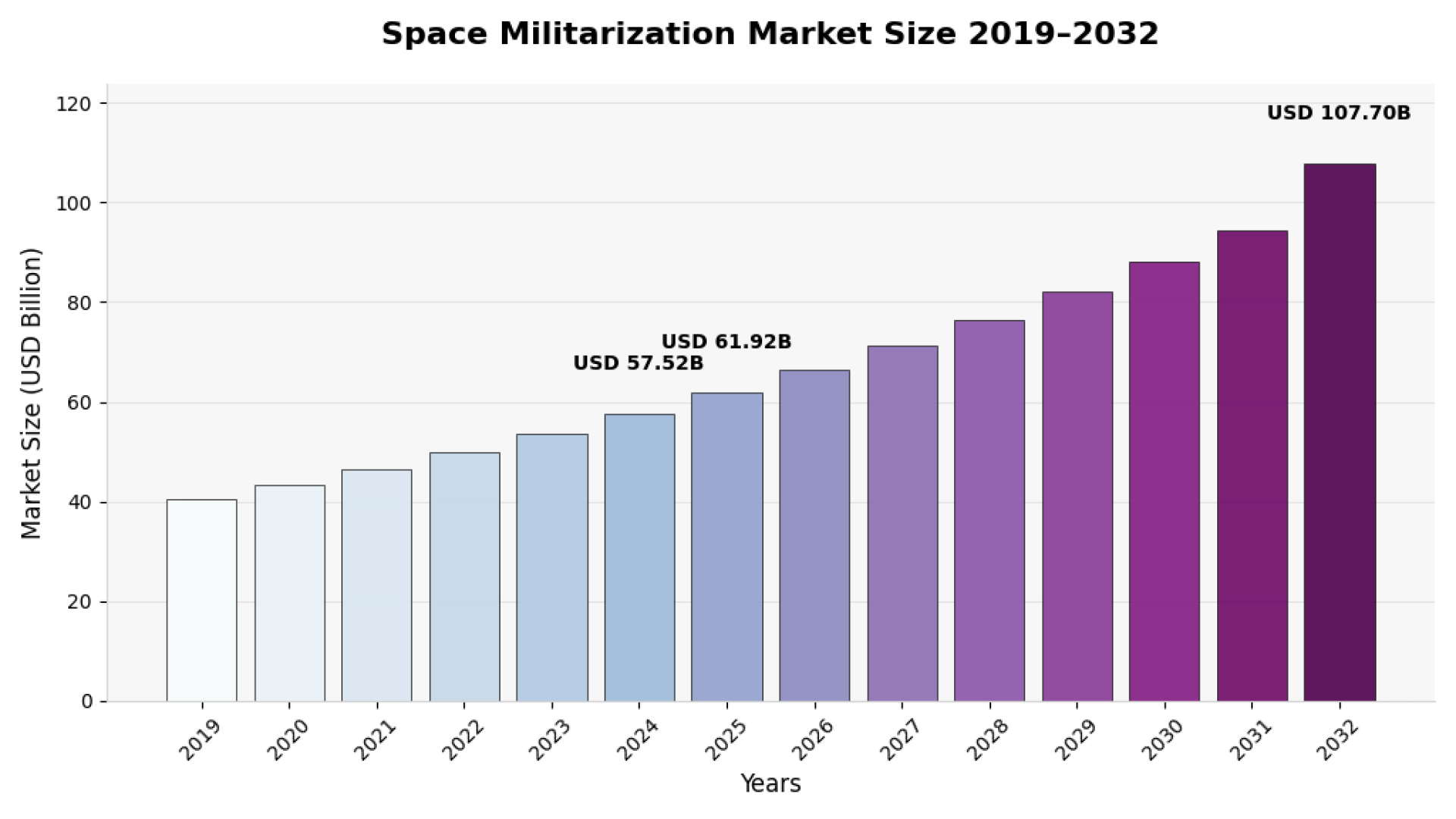 宇宙軍事化市場は2032年まで年平均成長率7.3%で成長すると予想